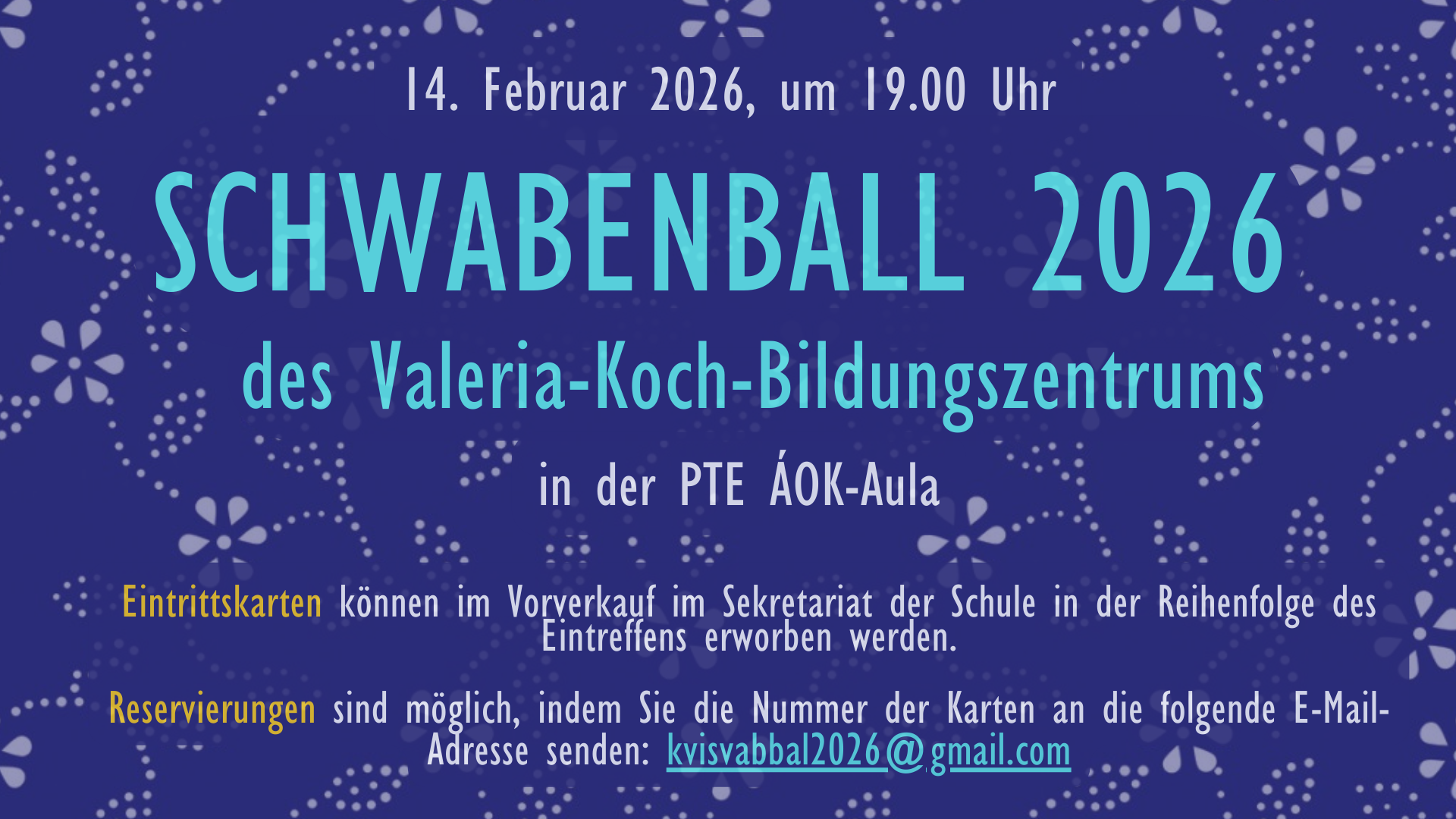 um die aktuellen Informationen zum traditionellen Schwabenball der Schule zu erhalten, klicken Sie bitte auf die beigefügte Grafik.