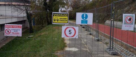 A szünet hetében elkezdődött az építkezés, ennek következtében gyökeresen megváltozott az iskola épületének megközelíthetősége. Autóval a belső udvarra egyáltalán nem lehet behajtani, gyalogosan megközelíthető a kollégium felül a főporta egy keskeny sávon. Az „új” aula ajtaja zárva lesz, az általános iskolába a déli – régi – portán keresztül lehet bejutni, s onnan a gyerekek szülői kíséret nélkül az eddig megszokottak szerint, reggel és délután az új aulában gyülekeznek. Annyi változott tehát, hogy az aulát a déli oldalról a portán keresztül lehet csak megközelíteni.