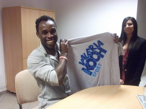 A beszélgetést követően megajándékoztuk egy üveg borral (amit arra hivatkozva, hogy fitt szeretne maradni, édesapjának fog ajándékozni), és iskolánk sportpólójával. Az első saját tervezésű pólót pedig dedikált nekünk, amit a későbbiekben elárverezünk. Távozása előtt készségesen állt a fényképezkedni vágyók rendelkezésére.